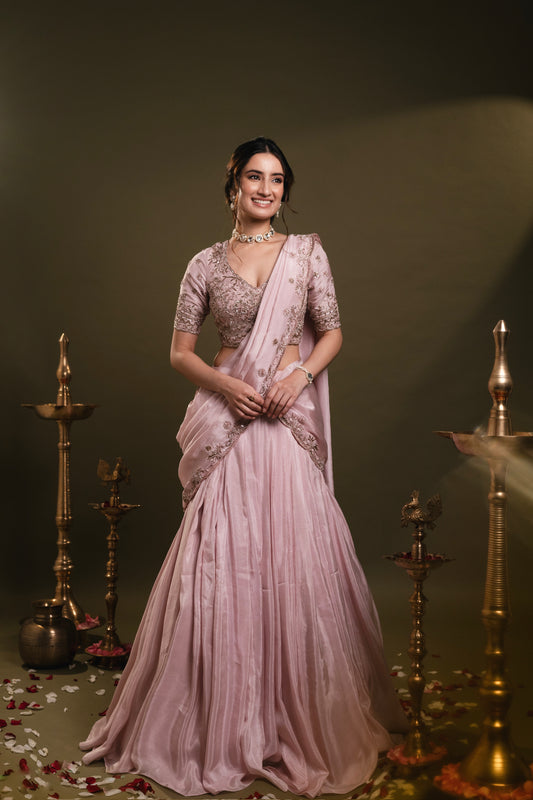 Pink Pre Draped Saree