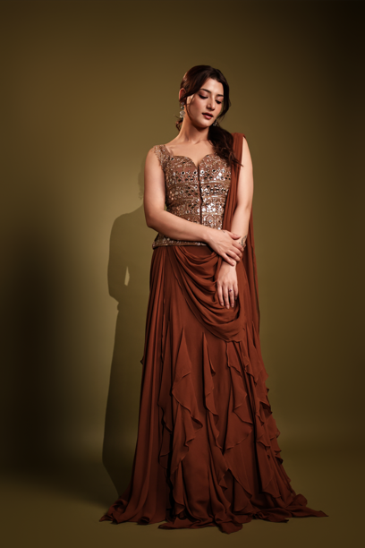 Our pre-draped sarees combine grace and style, offering timeless elegance with a perfect blend of classic and contemporary flair.