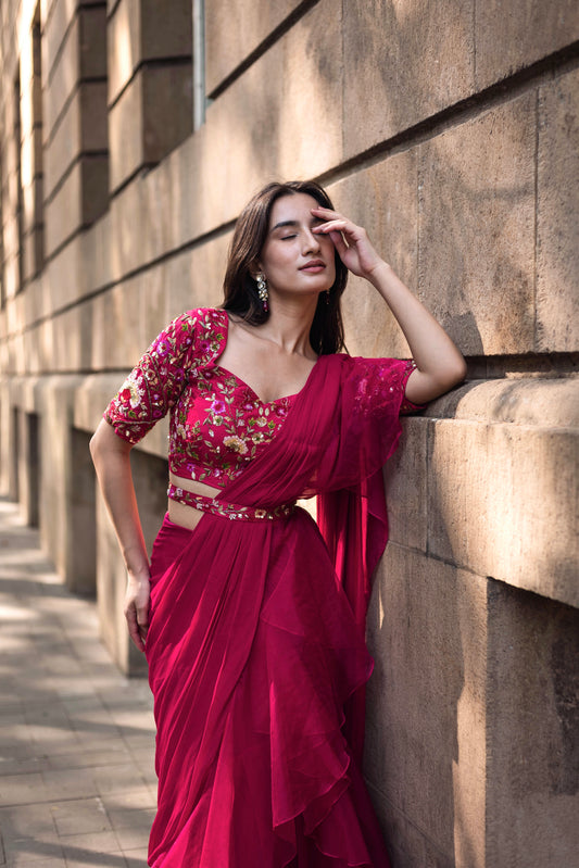 Pink Pre Draped Saree