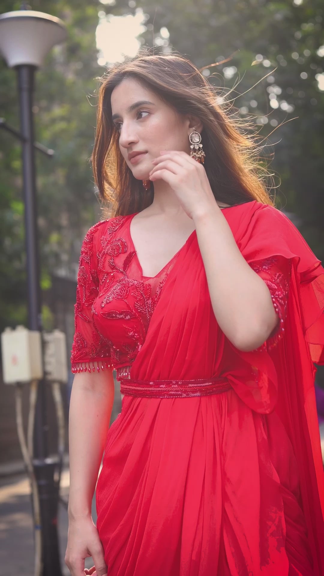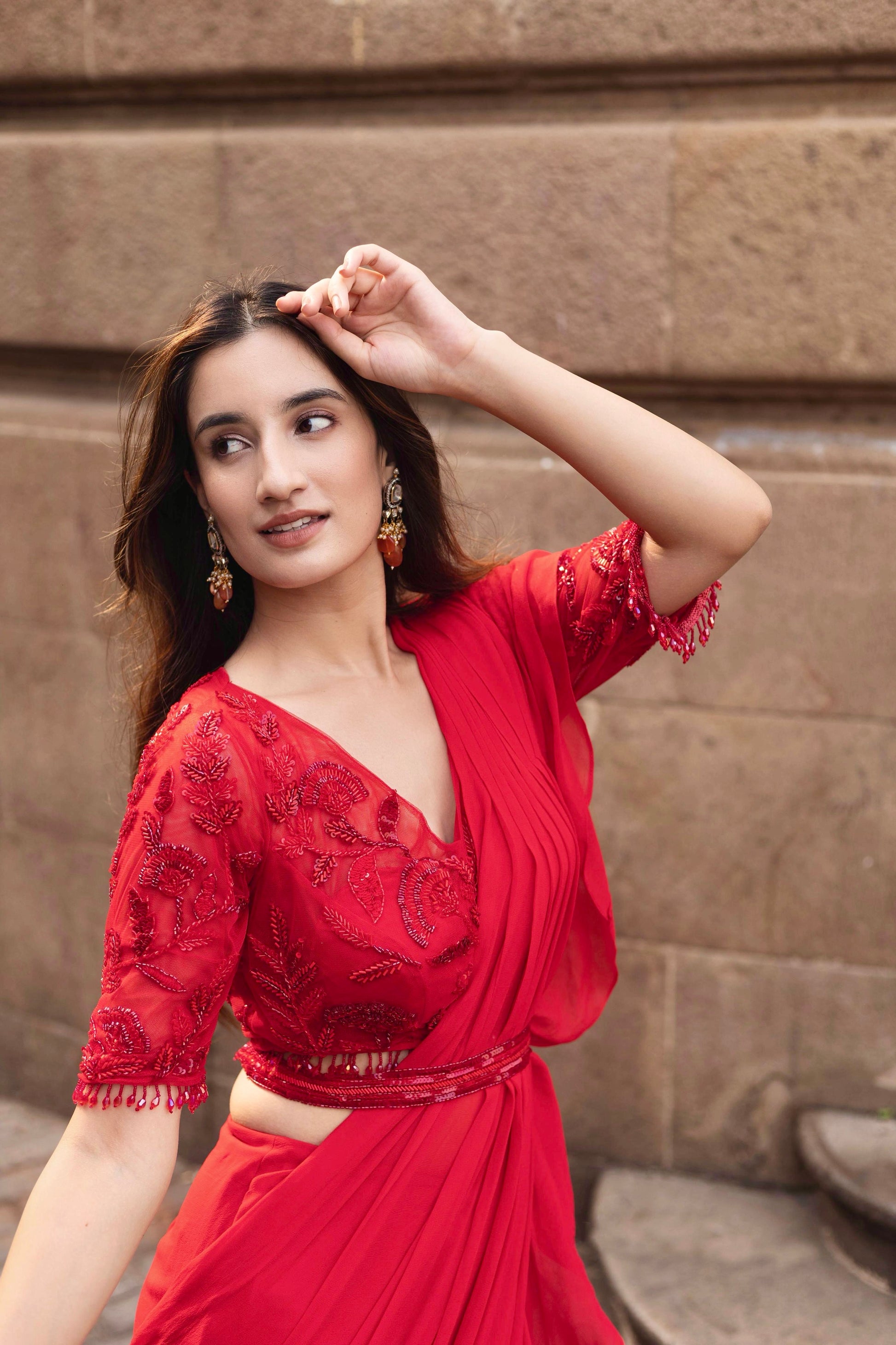 This Pre-Draped Georgette Saree is paired with a beautifully hand-embroidered blouse, adorned with delicate cutdana and beads for a touch of opulence. The soft georgette fabric drapes gracefully, while the embroidered blouse adds a sophisticated, modern touch. Ideal for elegant occasions, this ensemble combines timeless beauty with contemporary style.
