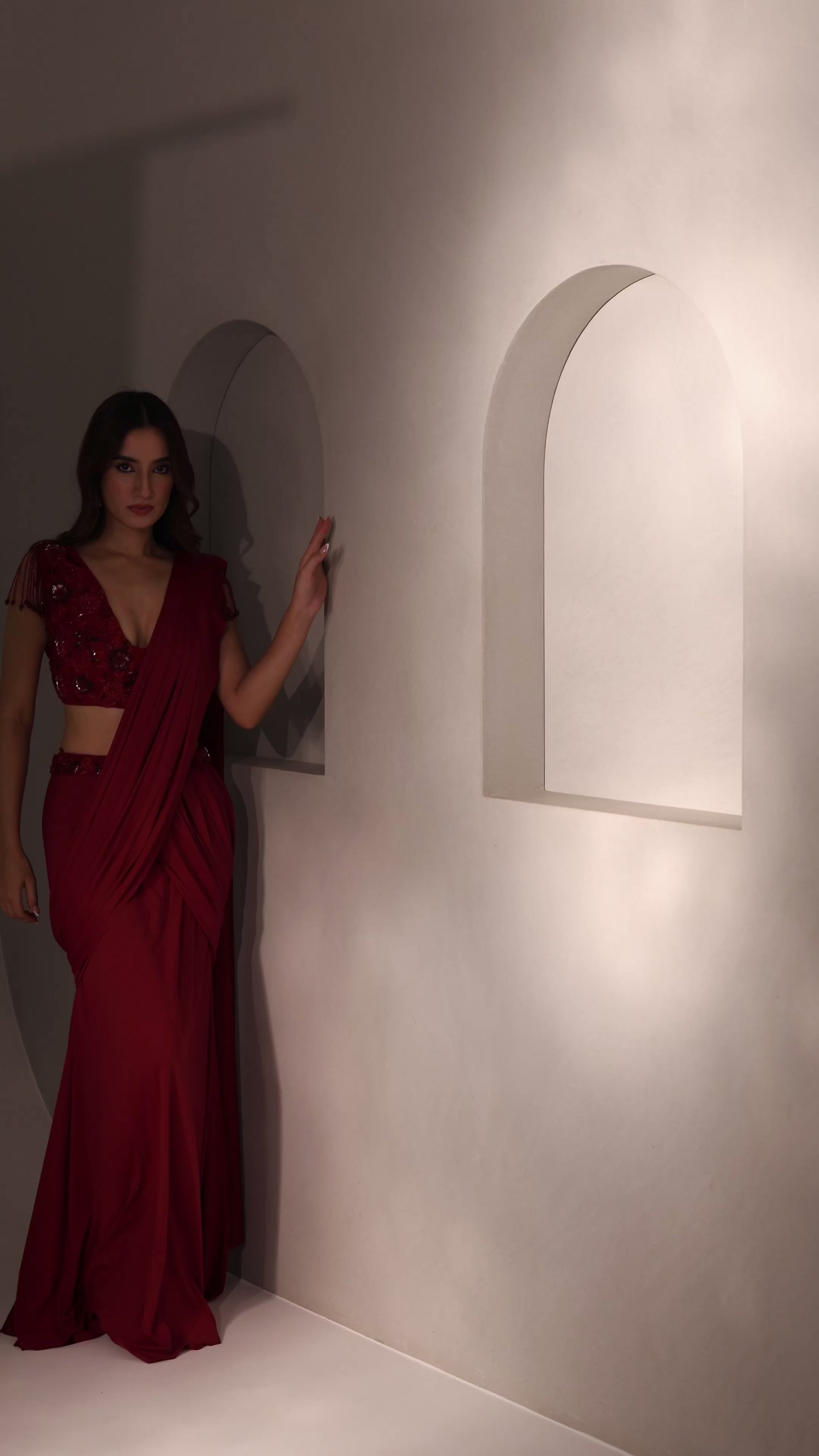 Poppy, a Lycra Pre-Draped Saree with a Soft Net Blouse featuring Cutdana, Beads, and Pearl Embroidery is a chic, easy-to-wear choice. The vibrant color and detailed blouse make it perfect for any occasions.